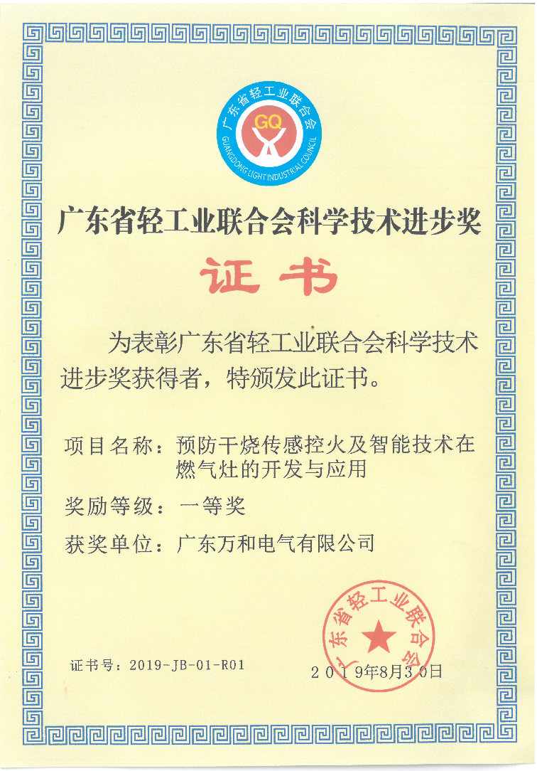 近日,广东省轻工业联合会正式公布了2019年科技进步奖评选结果,由广东乐投(中国)电气有限公司(乐投app官方在线入口子公司)研发的“预防干烧传感控火及智能技术在燃气灶的开发与应用”项目荣获广东轻工联2019年科学技术进步奖一等奖。