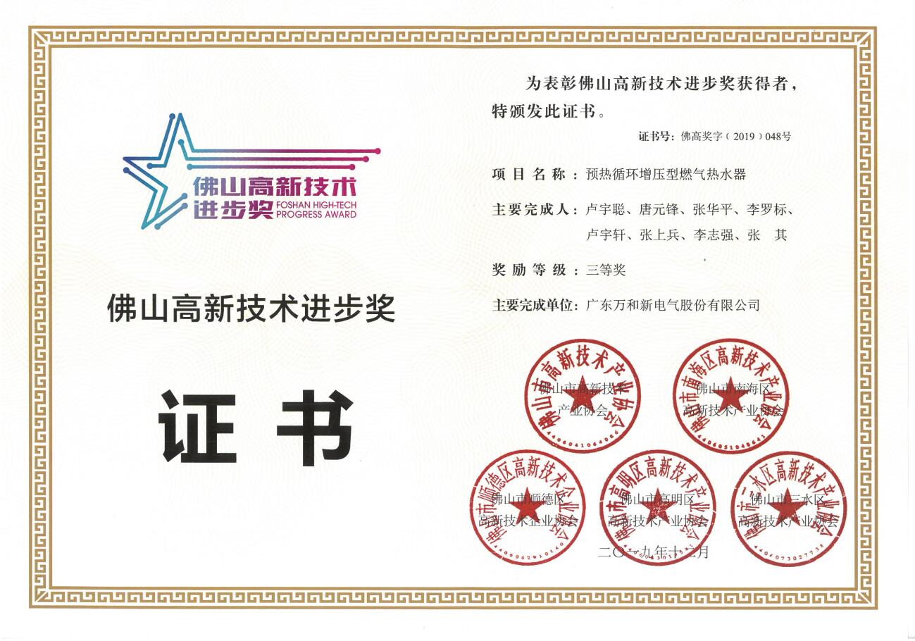 2018年,为助力创新型城市建设,表彰和鼓励为佛山科技进步做出突出贡献的单位和个人,根据《国家科学技术奖励条例》和《科技部关于进一步鼓励和规范社会力量设立科学技术奖的指导意见》的有关规定,佛山市设立了“佛山高新技术进步奖”,目的为深入推进实施创新驱动发展战略,激励佛山企业自主创新,鼓励佛山企业攀登科学技术高峰,营造自主创新、崇尚创新、保护创新、激励创新的社会氛围。